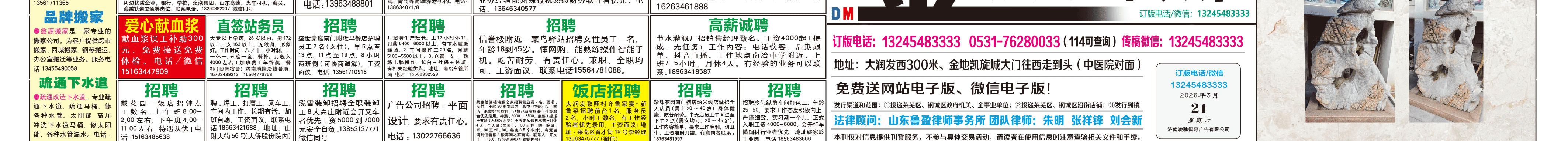 《莱芜金点子广告》报纸3月21日三、四版