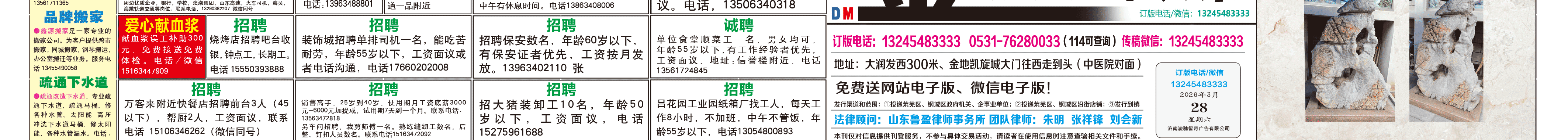 《莱芜金点子广告》报纸3月28日一、二版