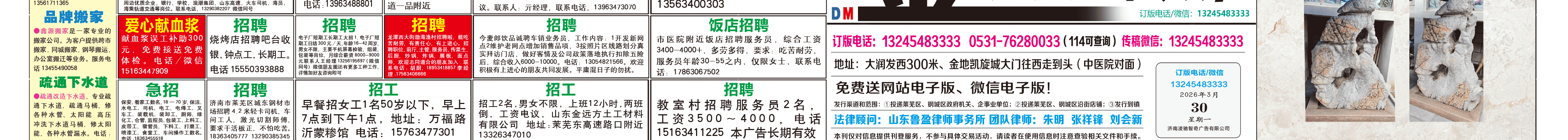 《莱芜金点子广告》报纸3月30日一、二版