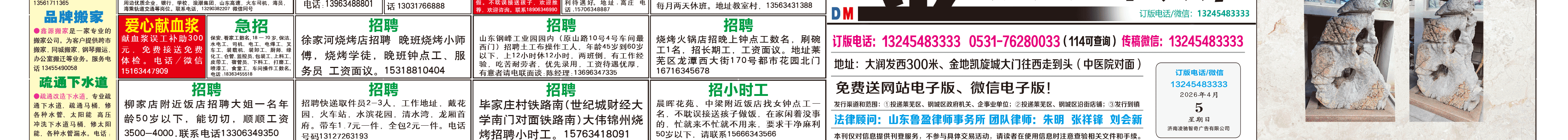 《莱芜金点子广告》报纸4月5日三、四版