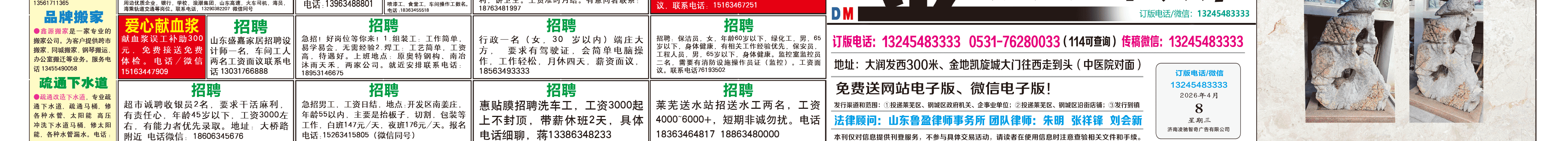 《莱芜金点子广告》报纸4月8日三、四版