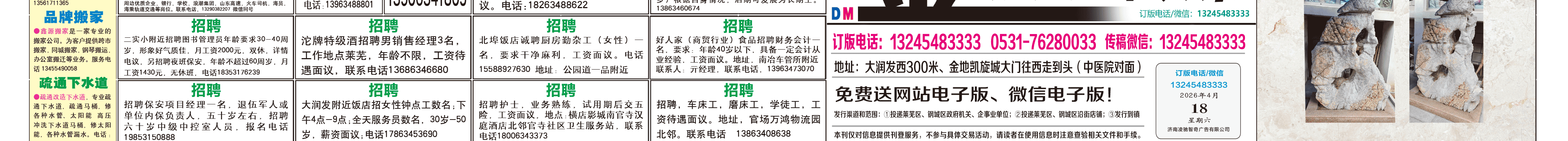 《莱芜金点子广告》报纸4月18日三、四版